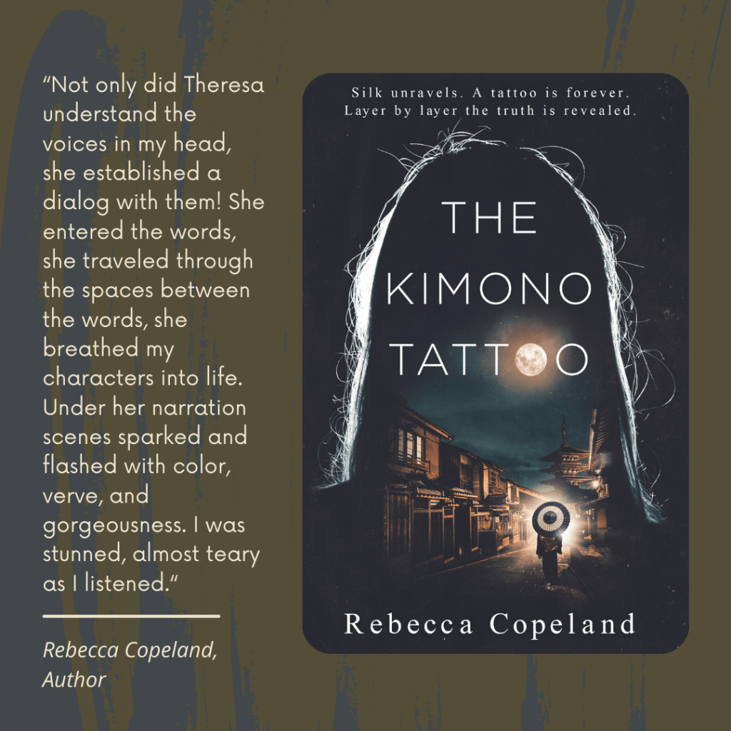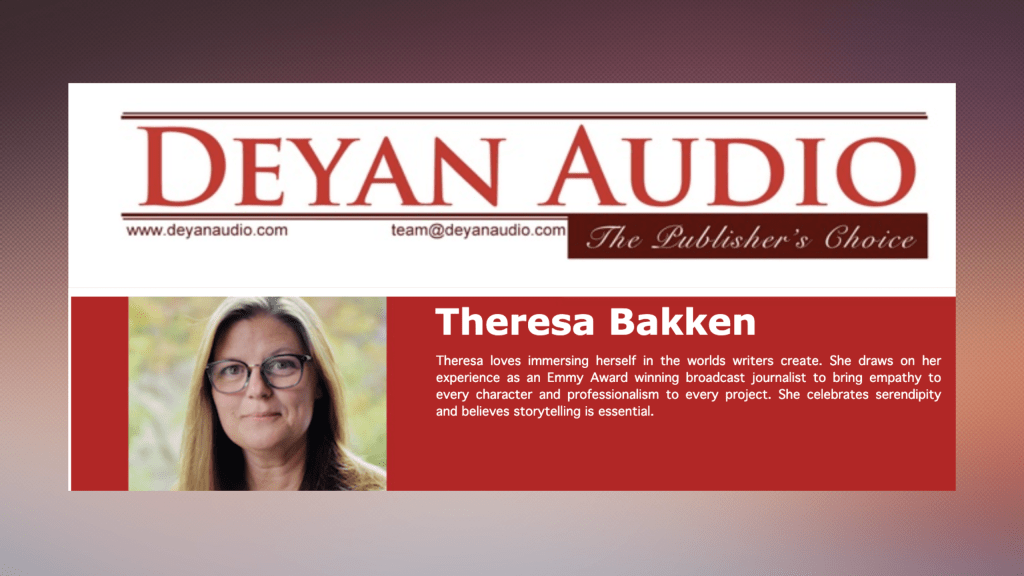 Working from a home studio, Theresa records with a Neumann TLM-102 microphone, uses PNR in Studio One and finishes files with RX 10. She is a member of the Audio Publishing Association. She uses narration coach Carol Mondo and acting coach Maria McCann. She completed the 21 Targets Audiobook Challenge with Matthew Lloyd Davies at Narrator.Life. And, attended a Splendiferous Workshop with Johnny Heller in NYC. After taking Master Classes at Deyan Institute with PJ Ochlan, she is also on the Deyan Talent Roster. Click to Theresa’s ACX demos, and APA Audiofile Profile